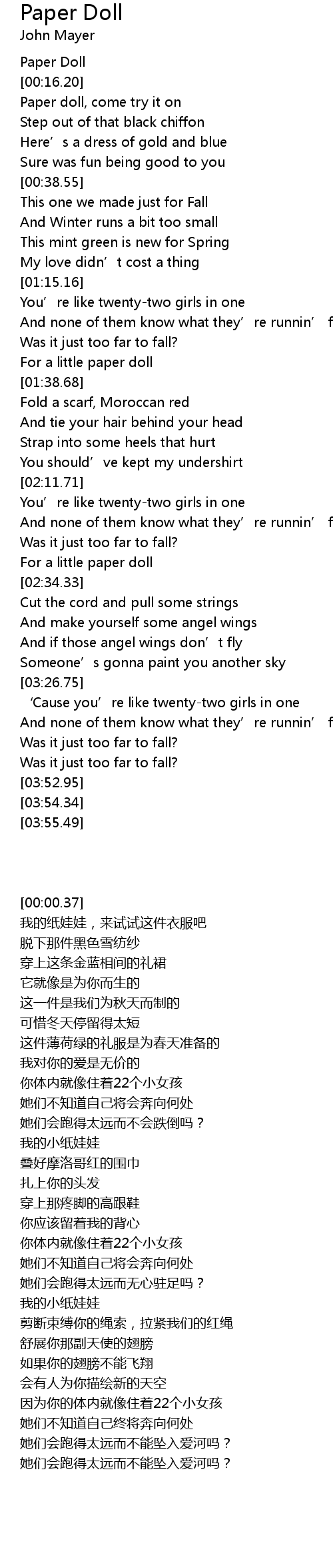 | [00:16.33] | 我的纸娃娃,来试试这件衣服吧 |