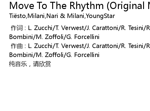 | [00:01.000] | zuò qǔ : L. Zucchi T. Verwest J. Carattoni R. Tesini R. Taormina F. Bombini M. Zoffoli G. Forcellini |