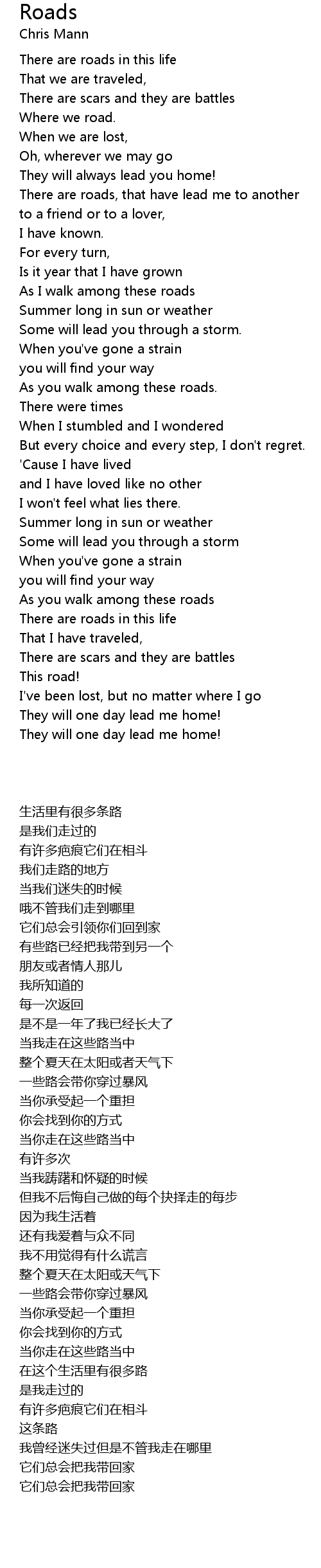 There are roads, that have lead me to another |