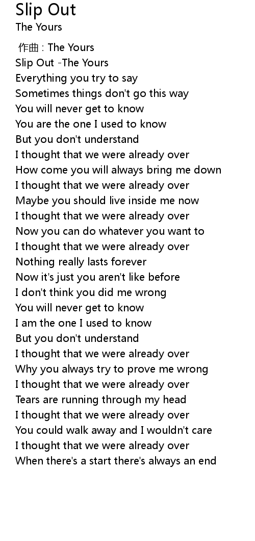 | [00:00.00] | Slip Out -The Yours |