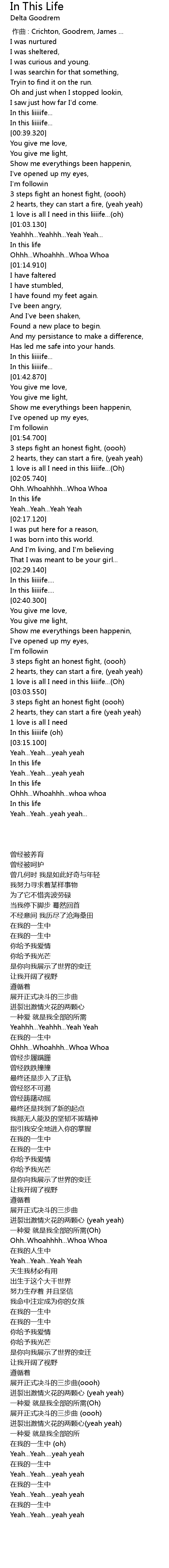 | 歌曲 | In This Life |