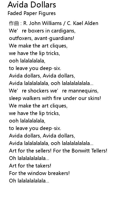 | [01:02.697] | Avida dollars, Avida dollars, |