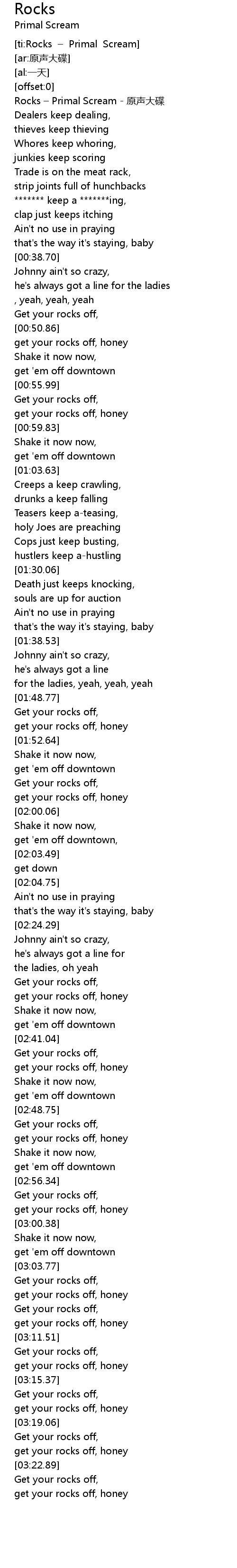 | [00:01.54] | Rocks Primal Scream yuán shēng dà dié |