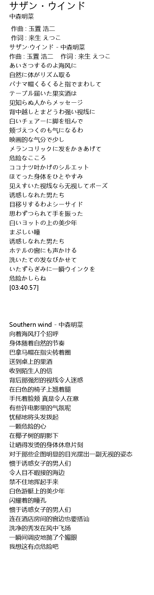 | [00:00.02] | Southern wind - 中森明菜 |