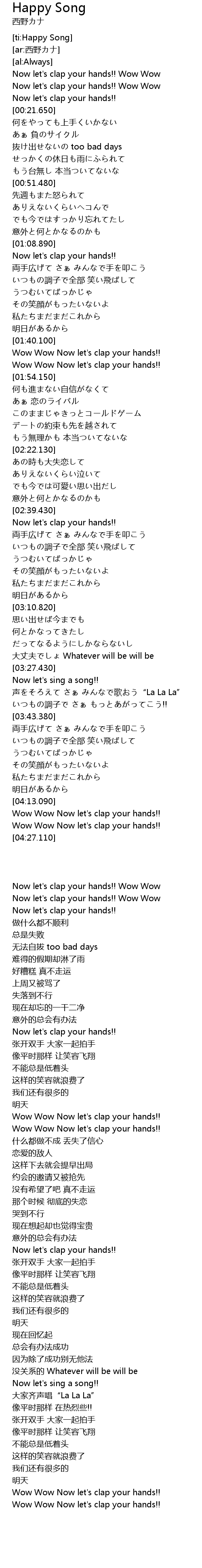 | [00:20.140] | Now let's clap your hands!! |