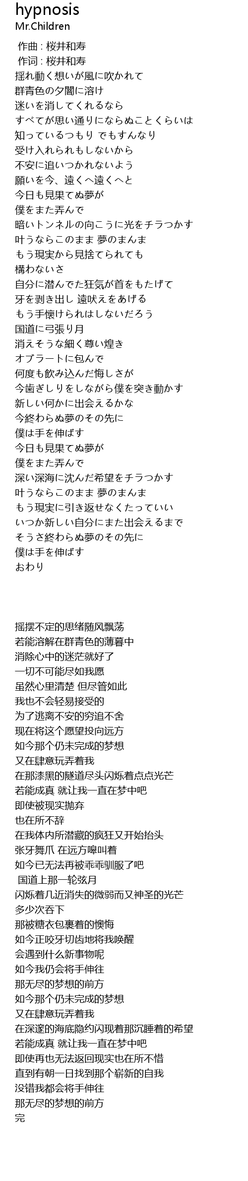 | [00:01.00] | 作词 : 桜井和寿 |