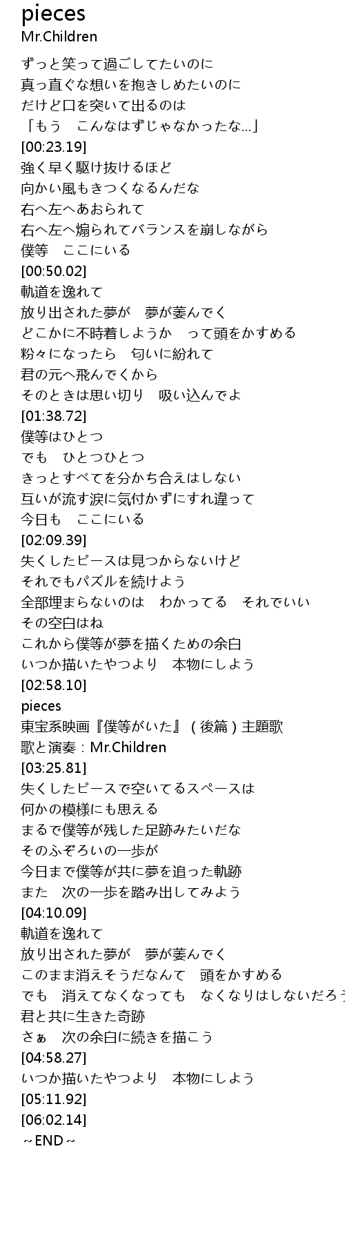 | [03:20.38] | 歌と演奏:Mr.Children |