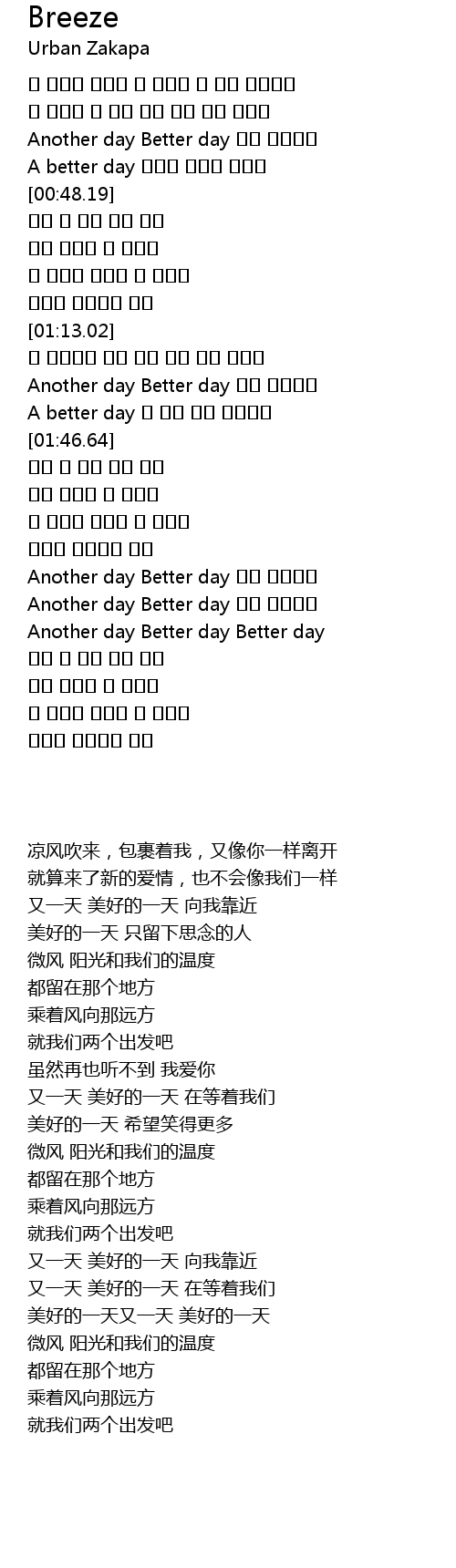 | [01:34.76] | Another day Better day |