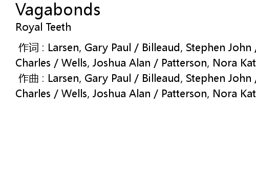 | [00:00.000] | 作曲 : Larsen, Gary Paul / Billeaud, Stephen John / Hefner, Josh Charles / Wells, Joshua Alan / Patterson, Nora Katharine / Poe, Andrew Martin |