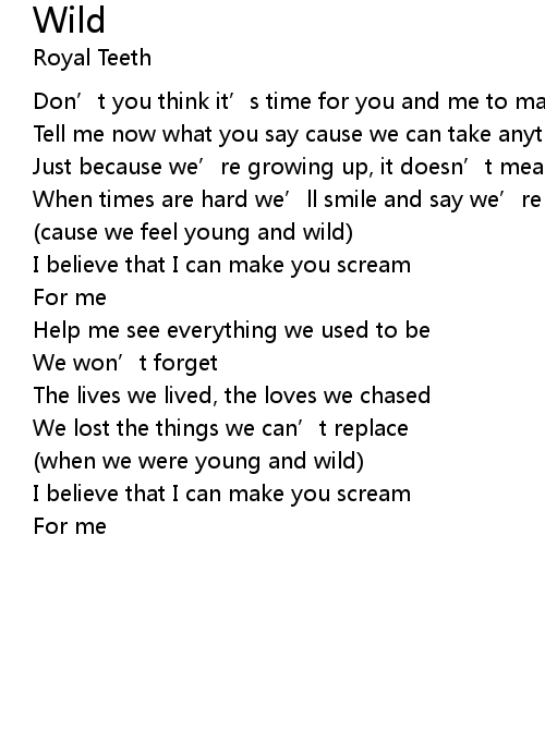| cause we feel young and wild | |