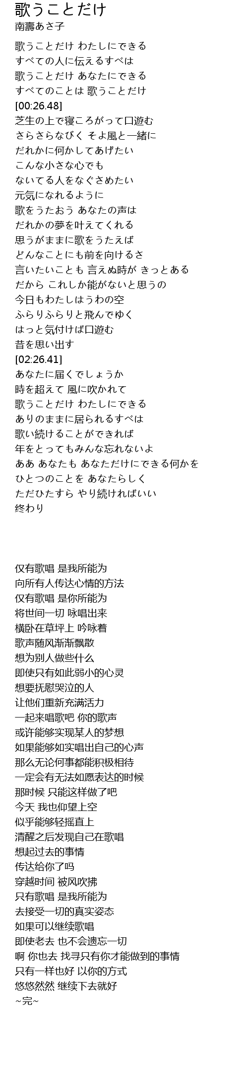 | [00:18.17] | すべてのことは 歌うことだけ |