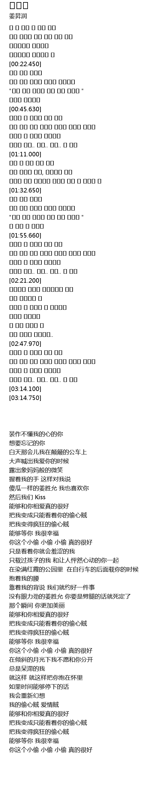 | [02:45.220] | 我的偷心贼 爱情贼 |