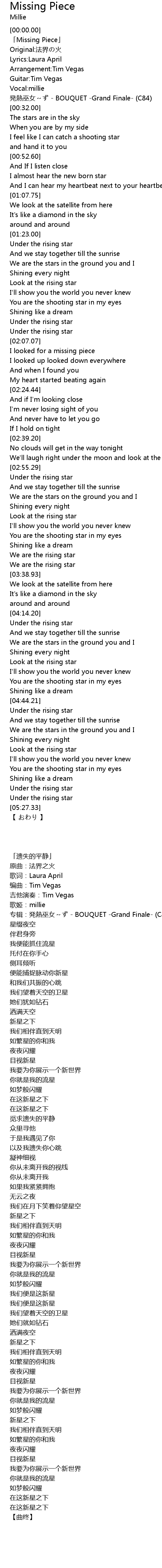| [00:04.00] | 「Missing Piece」 |