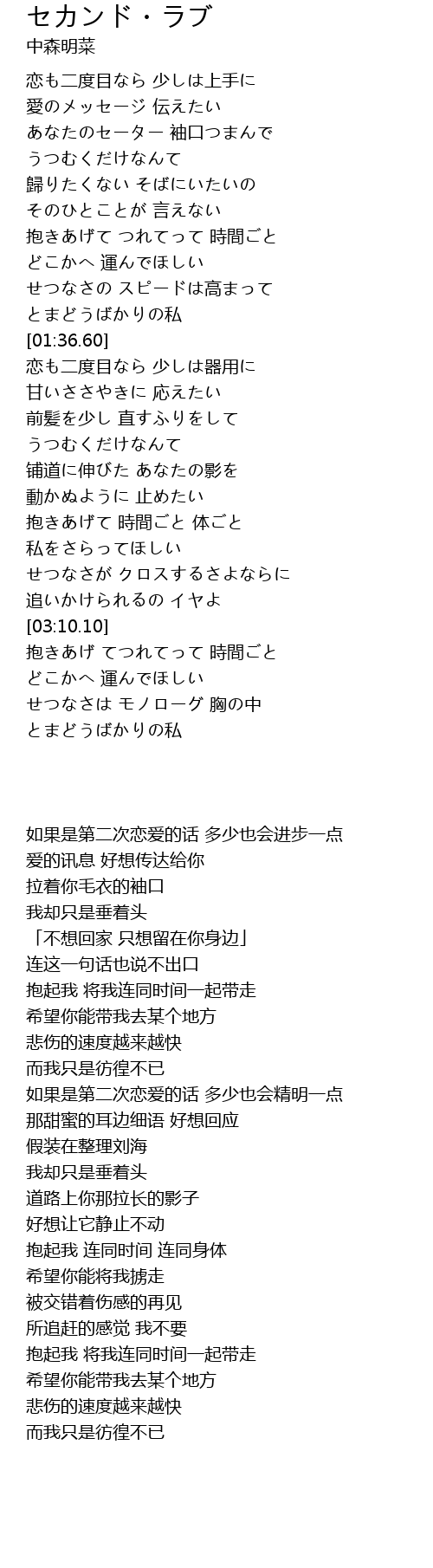 | [00:47.74] | 歸りたくない そばにいたいの |