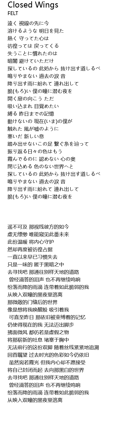 | [01:51.80] | 无法前行的这份双脚 随着丝线紧紧地追溯 |