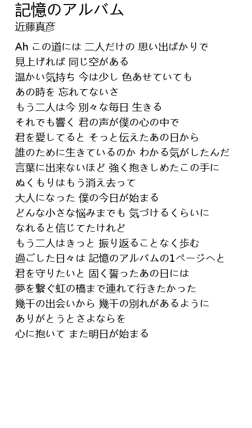 | Ah この道には 二人だけの 思い出ばかりで | |