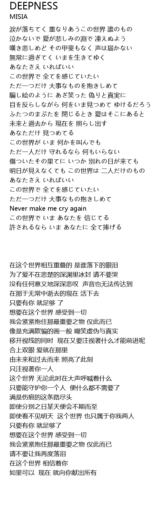 | [00:40.450] | 没有任何意义地深深悲叹 声音也无法传达到 |