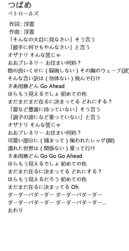 | [02:22.047] | さあ用意どん Go Go Go Ahead |