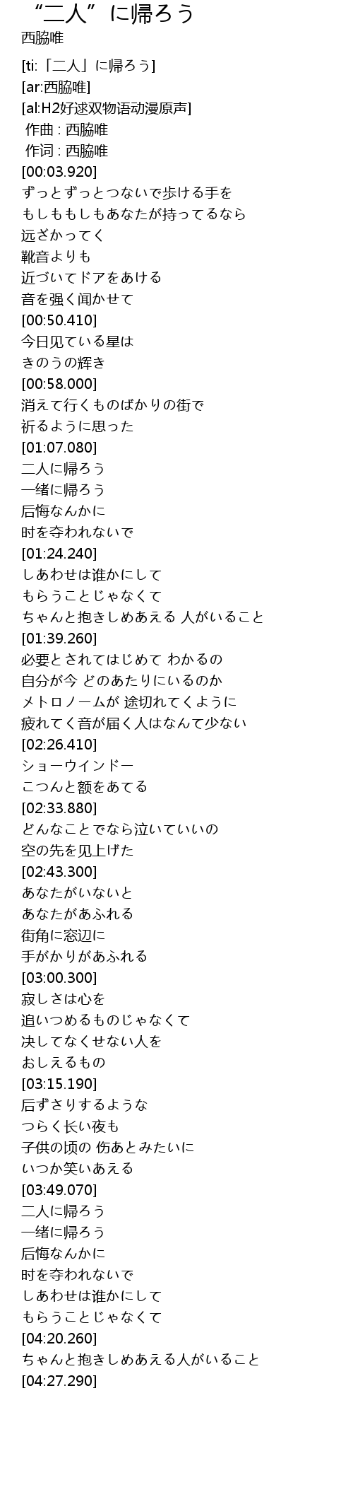 | [04:00.990] | 一绪に帰ろう |