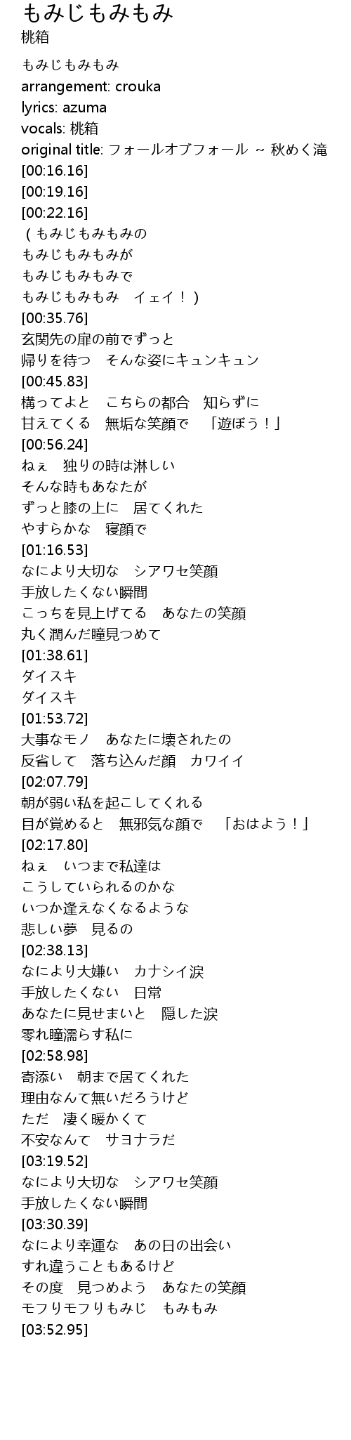 | [00:01.16] | もみじもみもみ |