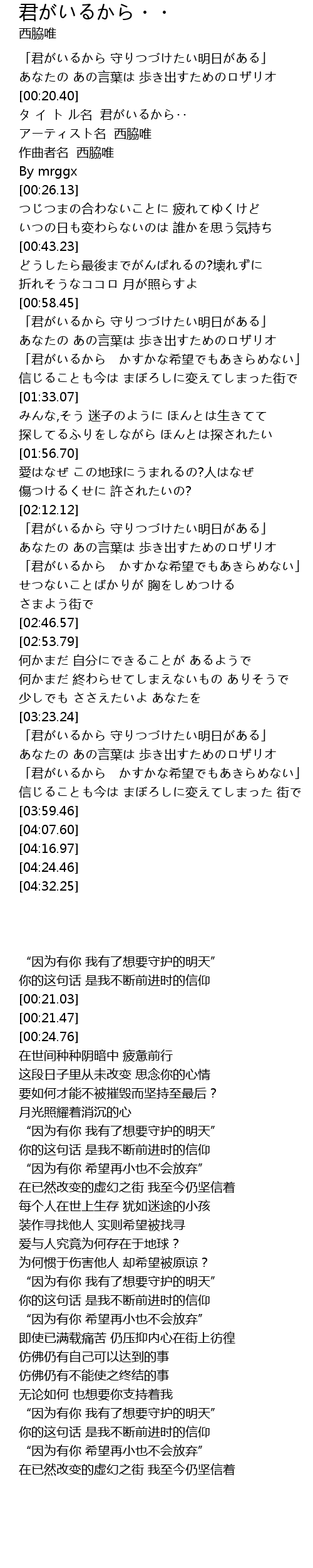 | [03:39.62] | 「君がいるから かすかな希望でもあきらめない」 |