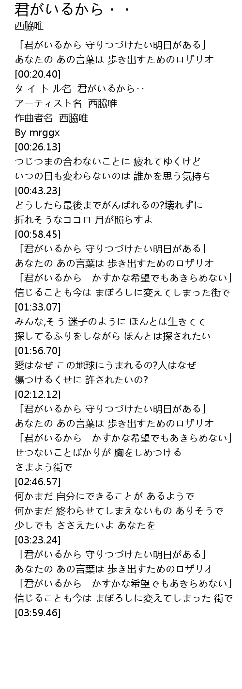 | [03:39.62] | 「君がいるから かすかな希望でもあきらめない」 |