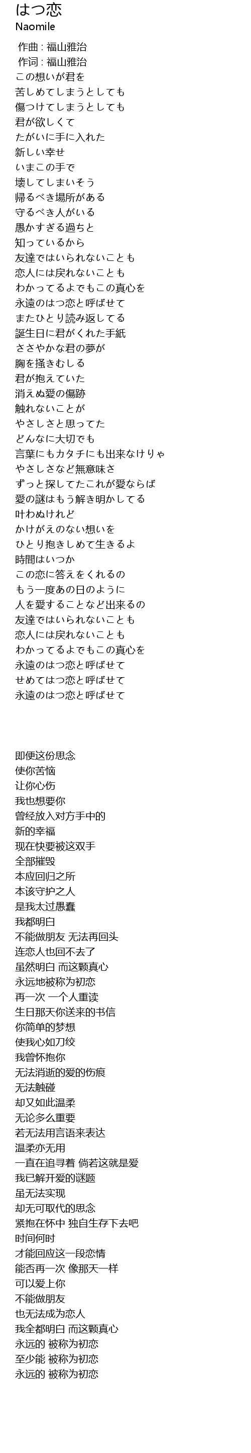 | [01:35.35] | 永遠のはつ恋と呼ばせて |