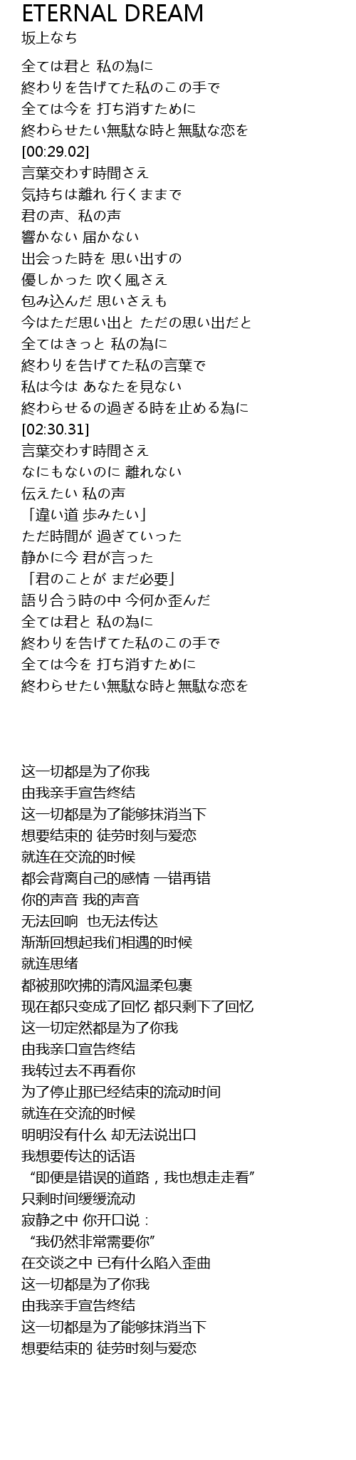 | [02:22.56] | 終わらせるの過ぎる時を止める為に |
