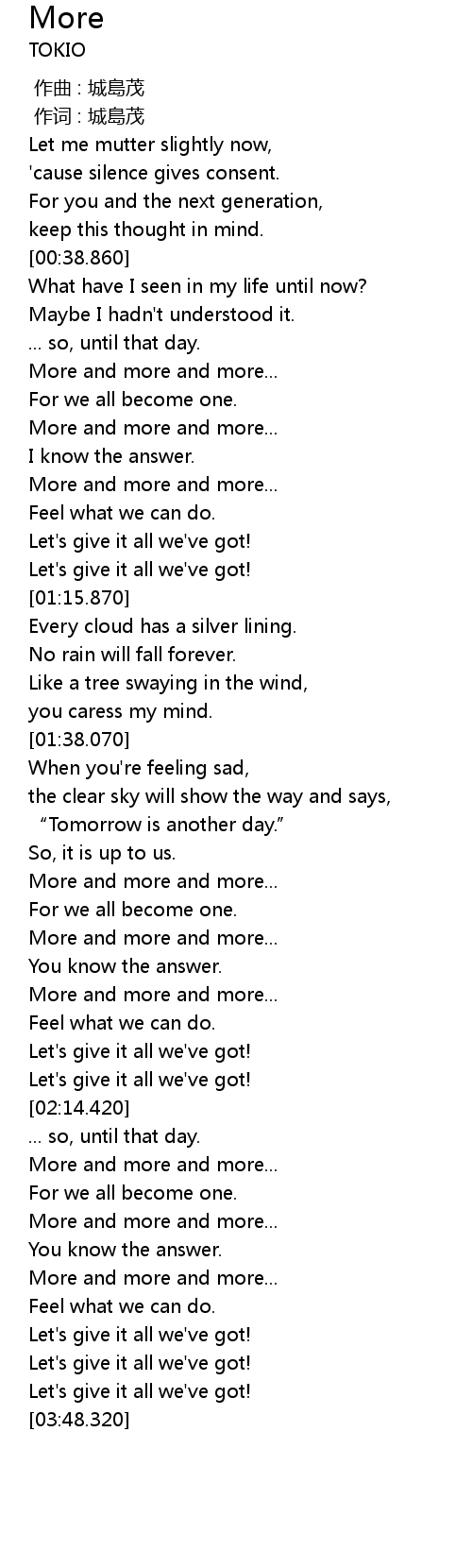 | [03:30.000] | More and more and more... |