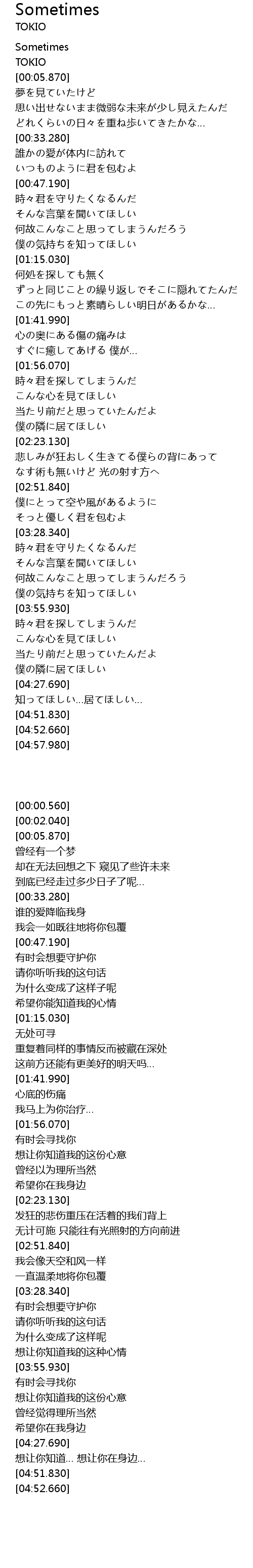| [00:47.700] | 時々君を守りたくなるんだ |