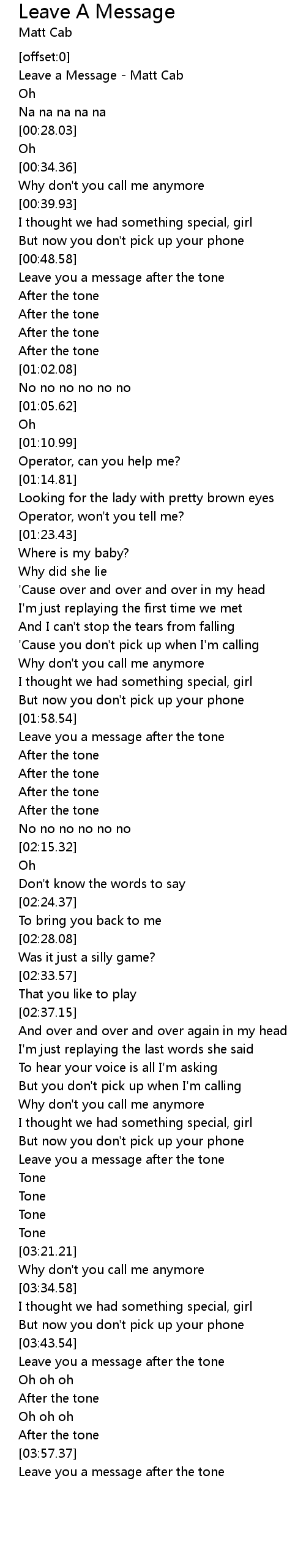 Leave a Message - Matt Cab |