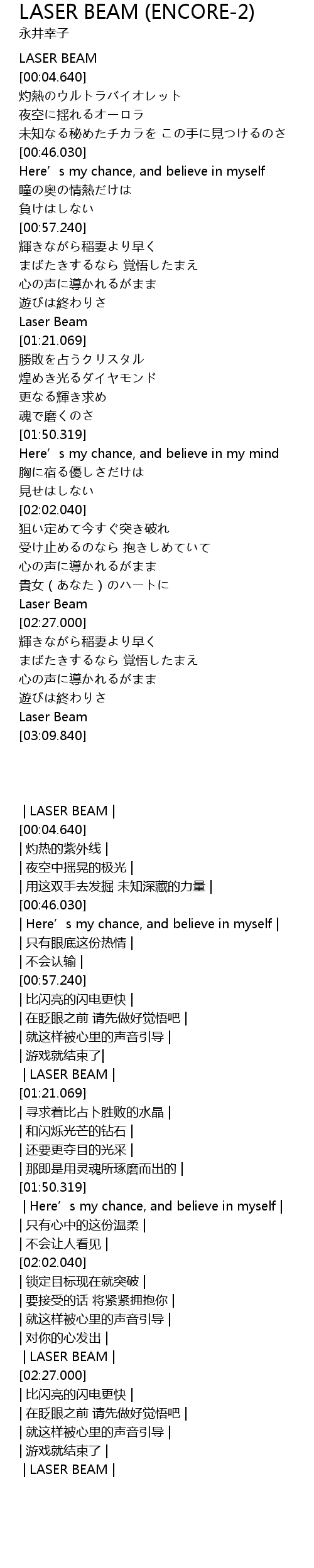 | [02:21.689] | Laser Beam |