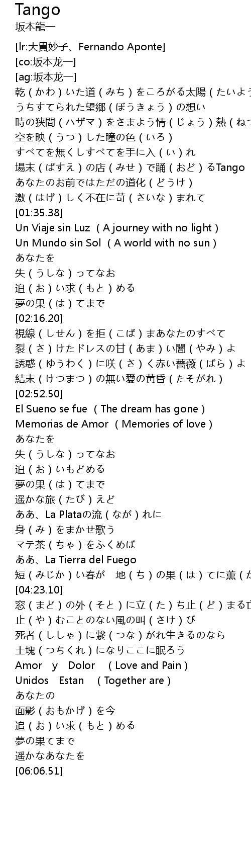 | [01:08.93] | chǎng mò diàn yǒng Tango |