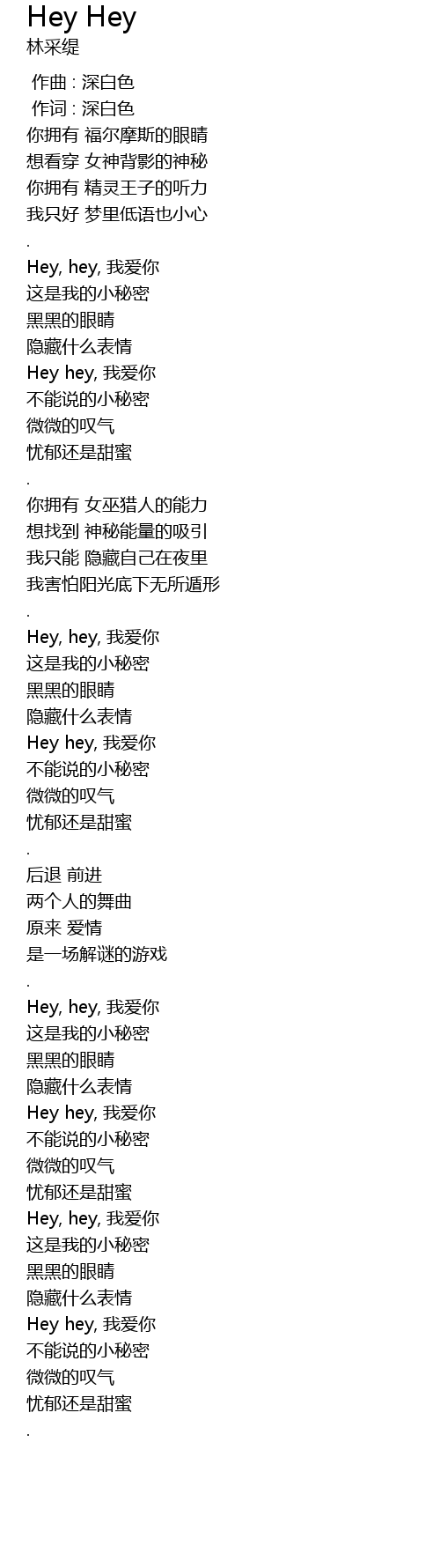 | [02:30.22] | Hey, hey, wo ai ni |
