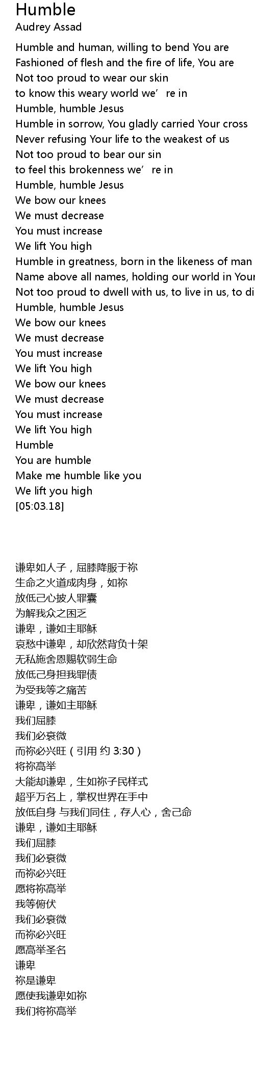 | [04:38.85] | 愿使我谦卑如祢 |