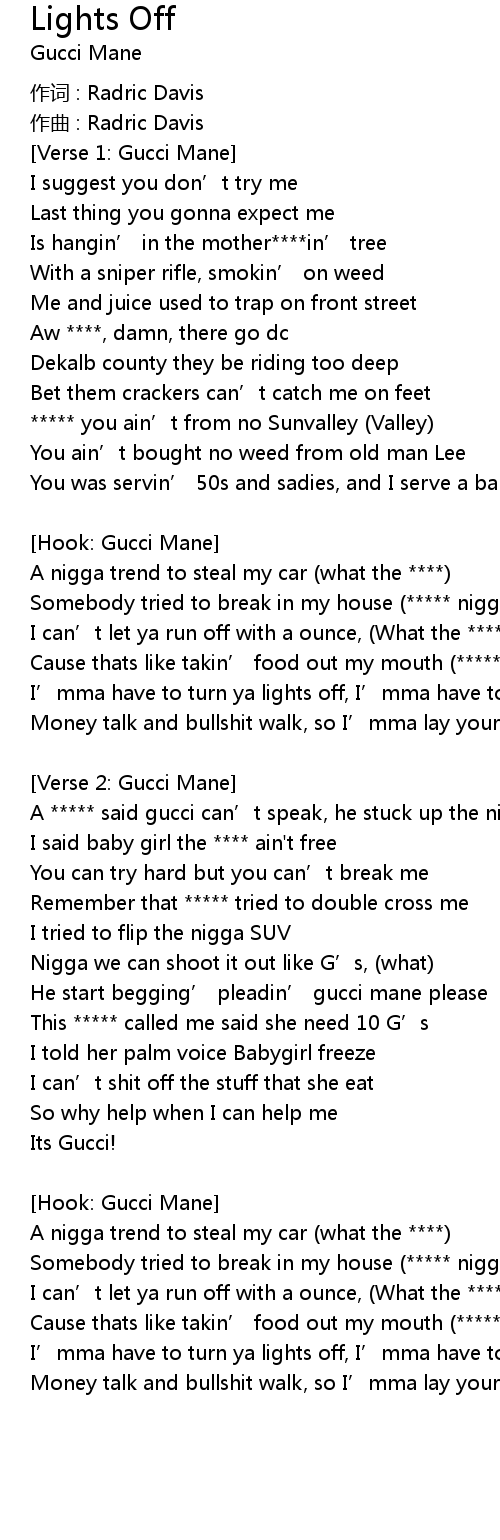 | I' mma have to turn ya lights off, I' mma have to turn ya lights off | |
