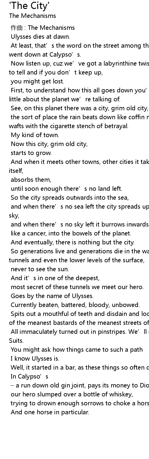 | [00:22.322] | See, on this planet there was a city, grim old city, |