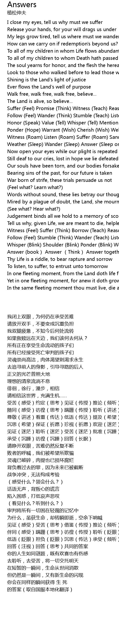 | [02:37.700] | Suffer (Feel) Promise (Think) Witness (Teach) Reason (Hear) |