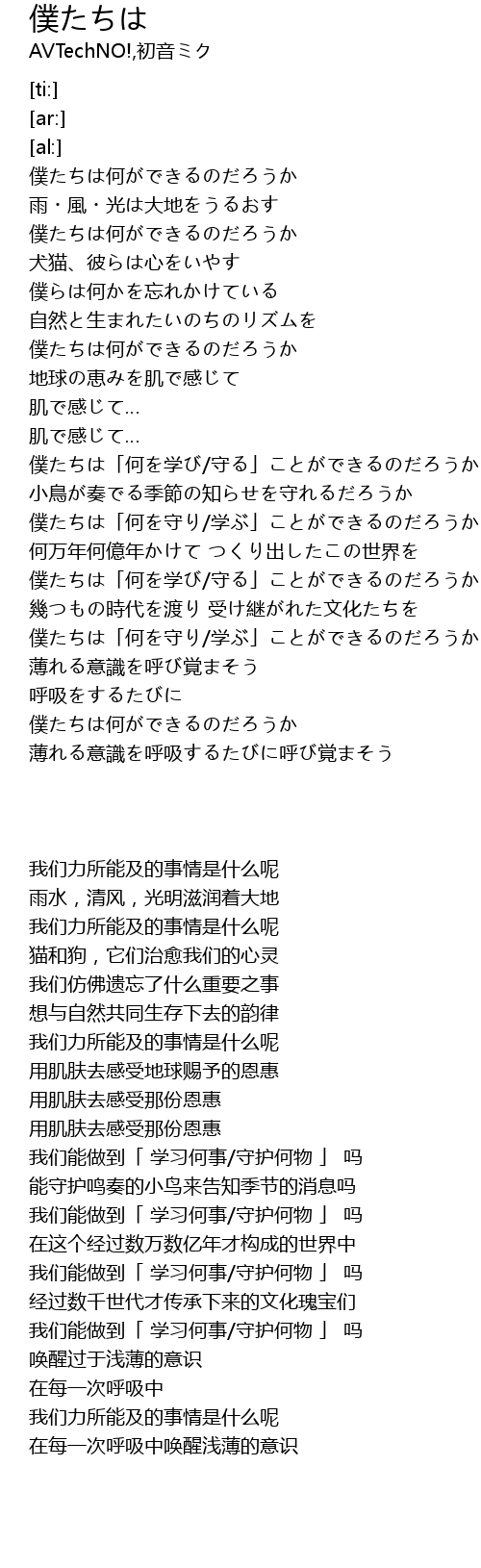 | [00:59.21] | 僕たちは何ができるのだろうか |