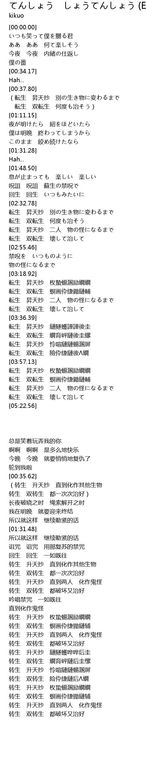 | [03:36.59] | 転生 昇天抄 縺隧蠖譁譁後圭 |