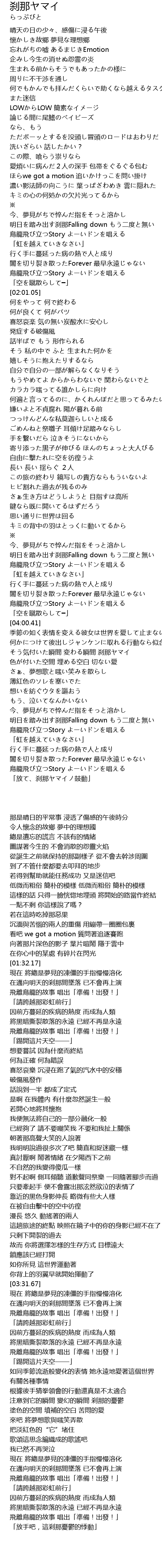 | [04:56.50] | 「放て、刹那ヤマイノ鼓動」 |