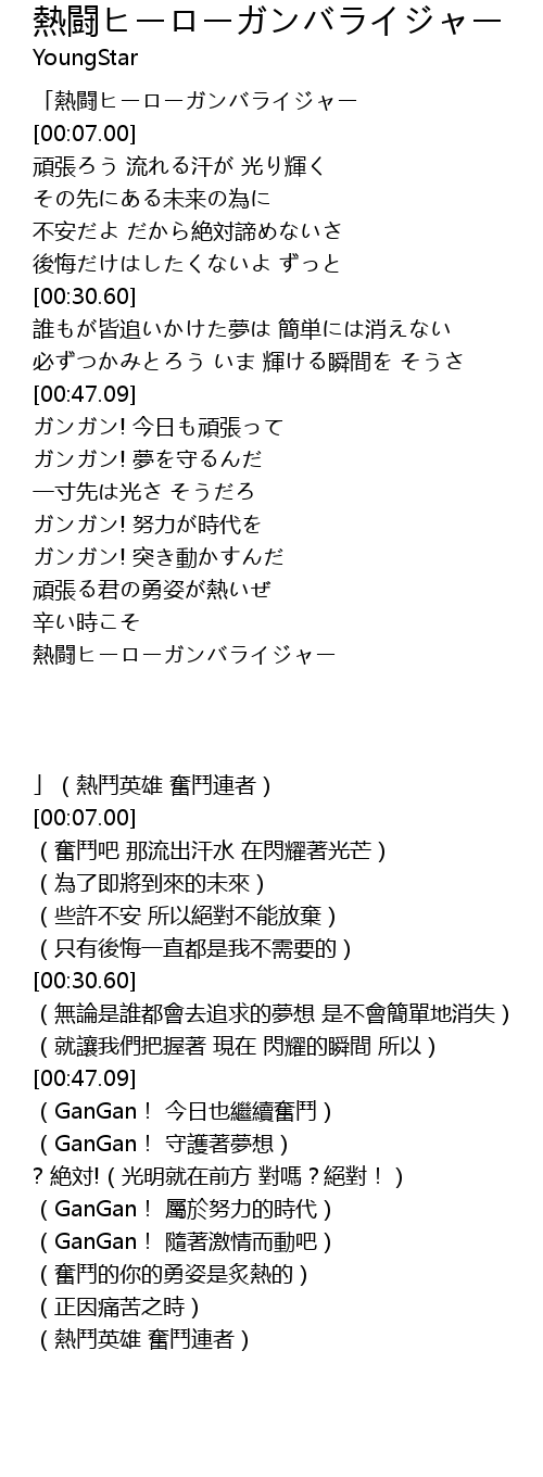 | [00:59.30] | (GanGan! 屬於努力的時代) |