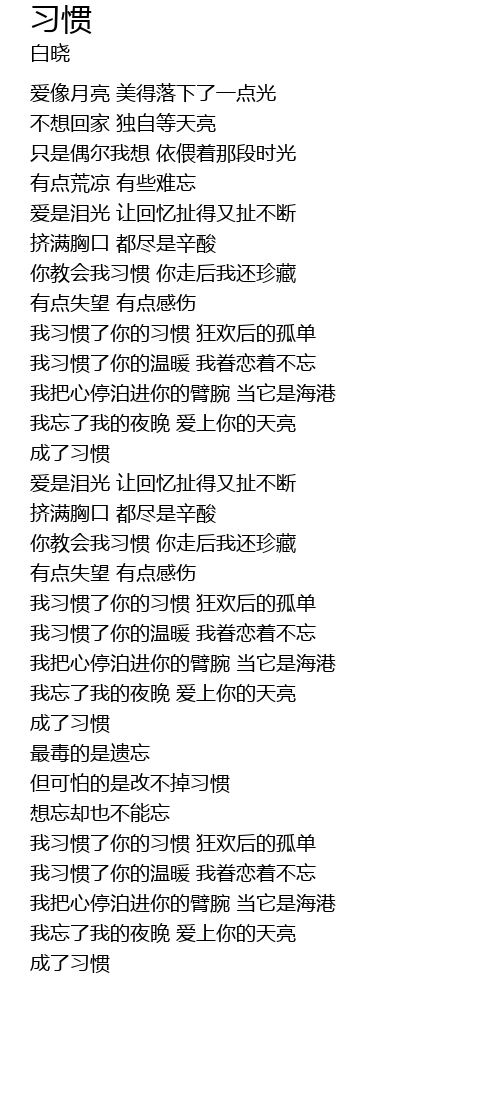| [01:35.400] | 我习惯了你的习惯 狂欢后的孤单 |