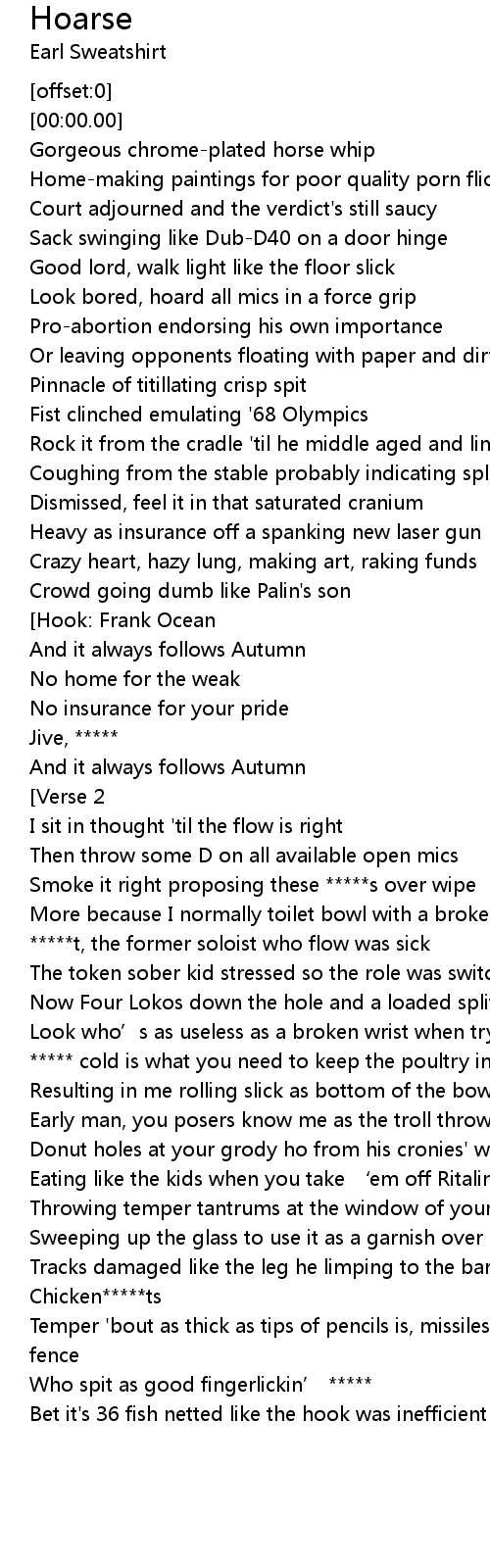 | [01:57.23] | Smoke it right proposing these *****s over wipe |
