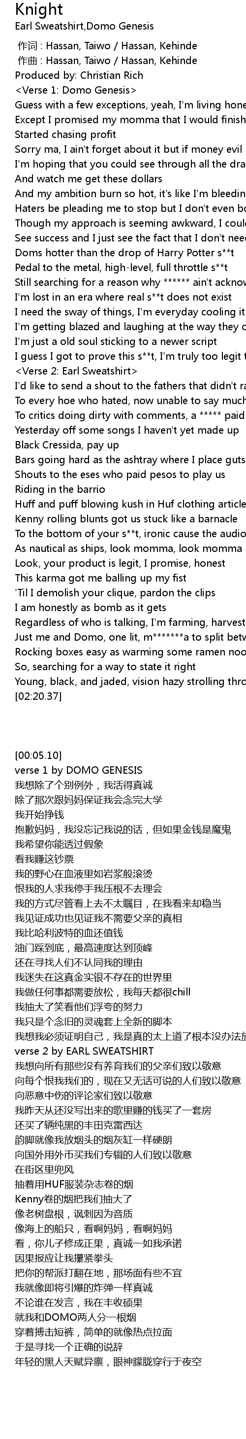 | [01:17.12] | Verse 2: Earl Sweatshirt |