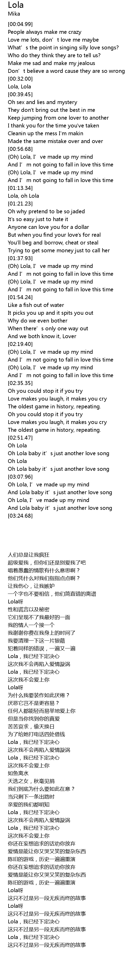 | [00:32.88] | Lola, Lola |