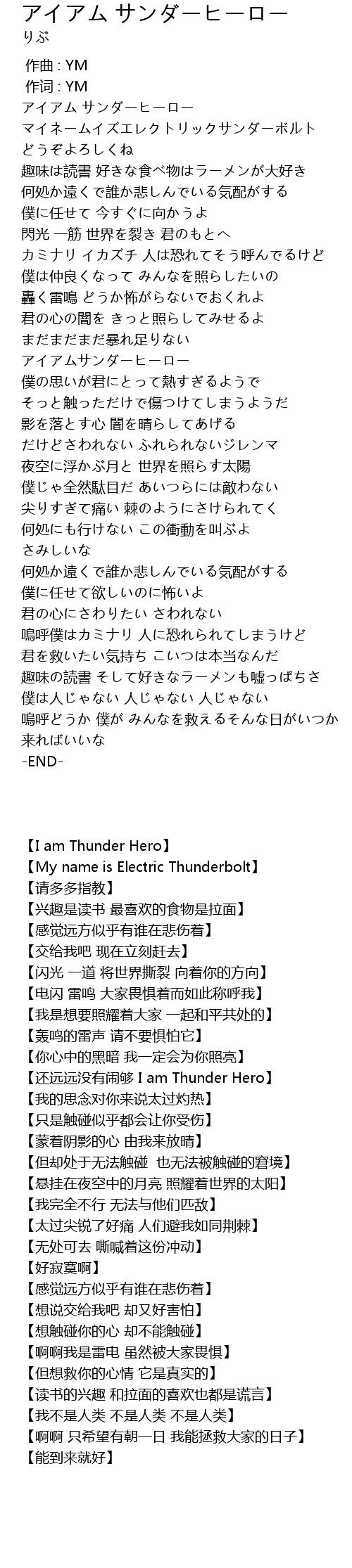 | [00:01.000] | 【I am Thunder Hero】 |