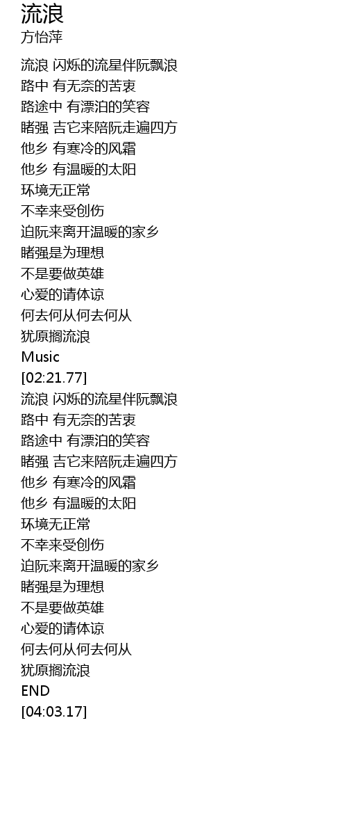 | [02:21.97] | 流浪 闪烁的流星伴阮飘浪 |
