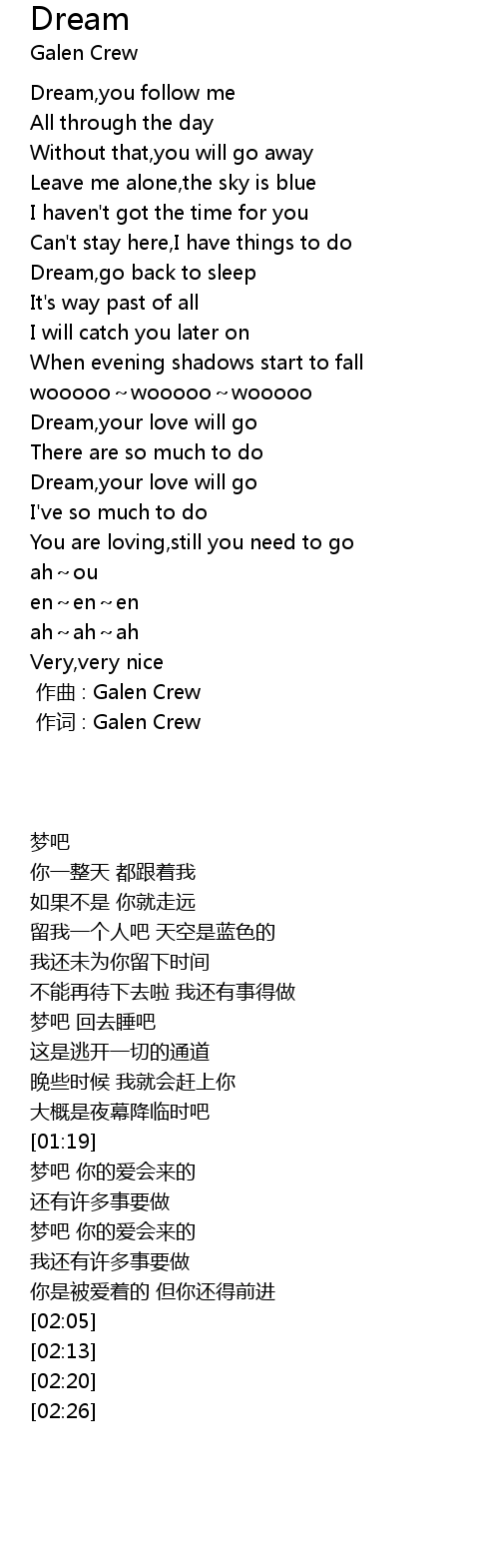| [00:10] | Dream,you follow me |