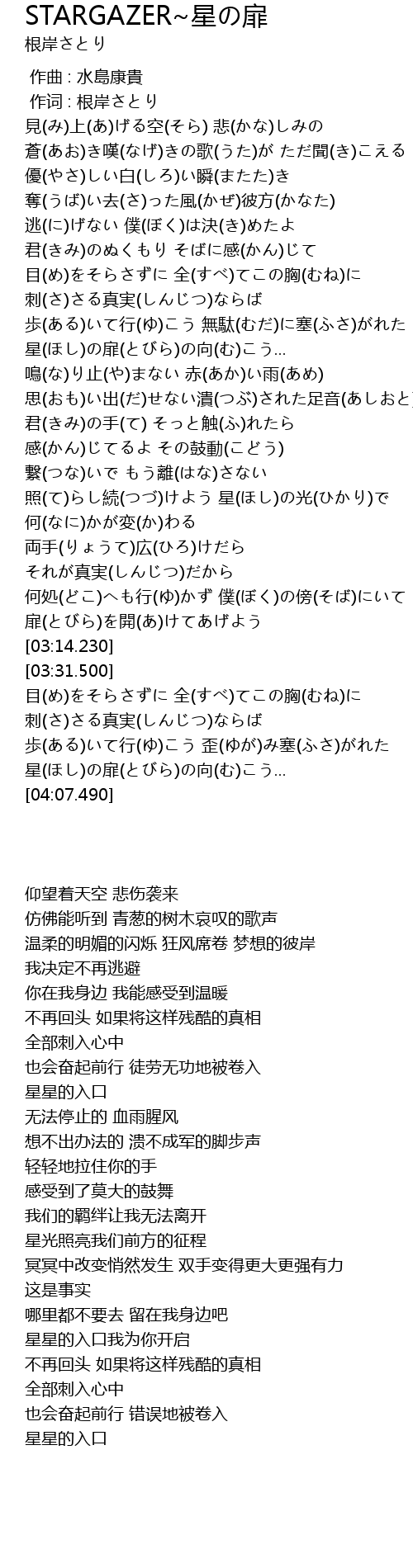 | [03:59.830] | 星(ほし)の扉(とびら)の向(む)こう... |